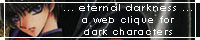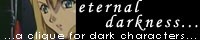 :: codes :: Remember to read the Rules before joining. Here are the codes for your site. There are the text code, and then there are some buttons and banners if you want to use those... text codes: eternal darkness :: your character(s) buttons & banners: For all buttons or banners links, please copy the image and upload them to your page. Direct linking will kill my bandwith. >_< Oh yeah, you are welcome to make your own banners if you want, but it must clearly show that you are part of this clique. Here's the html code: ![]() button links: